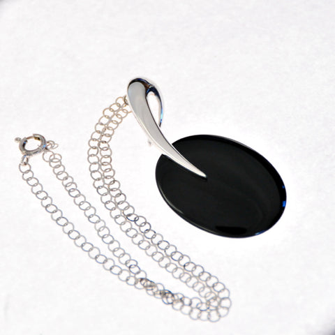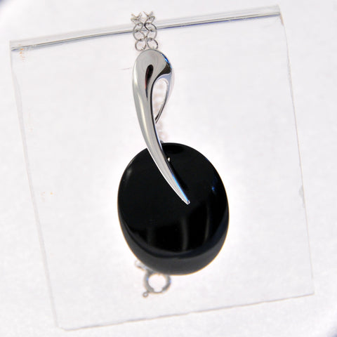 Sterling Silver pendent with polished finishing and oval black onix stone.